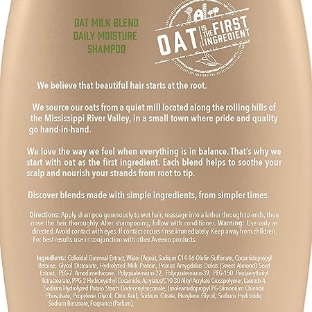 Aveeno Oat Milk Blend Shampoo Ingredients - Sulfate free shampoo, no dyes.